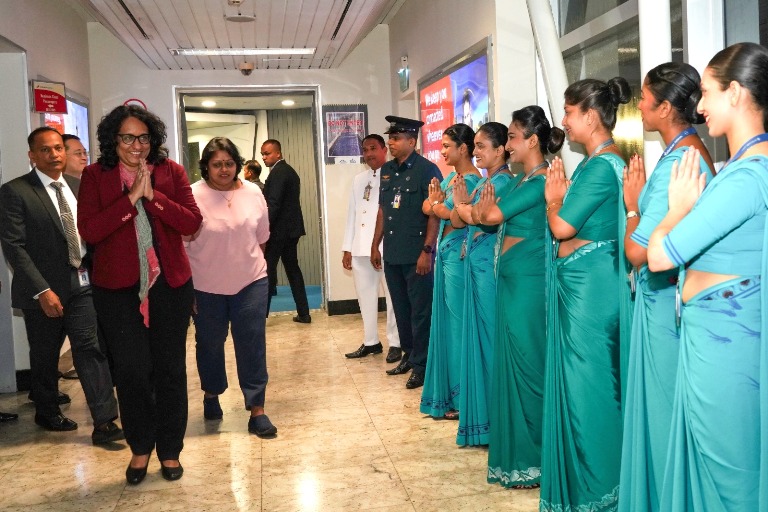 ඉන්දියාවේ නවදිල්ලි නුවරට ළඟා වූ අග්රාමාත්යවරිය, ඉන්දියාවේ ශ්රී ලංකා මහ කොමසාරිස් මහීෂිනි කොලොන්නේ මහත්මිය, ඉන්දීය ජ්යෙෂ්ඨ නිලධාරීන් සහ නවදිල්ලියේ ශ්රී ලංකා මහ කොමසාරිස් කාර්යාලයේ නිලධාරීන් විසින් පිළිගනු ලැබීය.