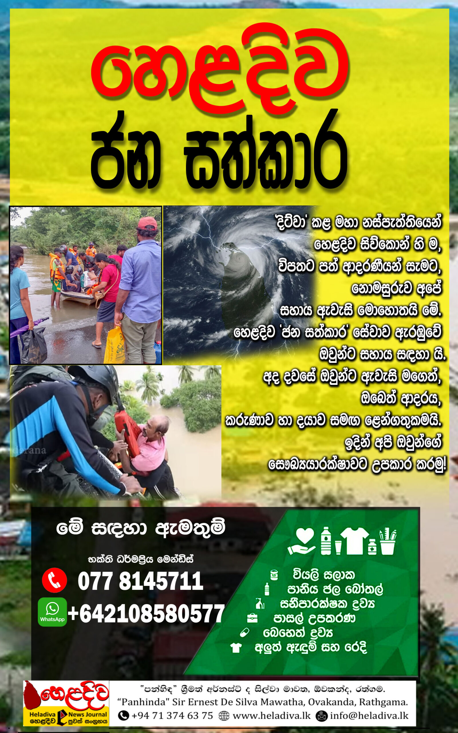 ආර්ථිකඋණුසුම් පුවත්කාලීනතාක්ෂණයනව නිපැයුම්සෞඛ්යය අපි රොක් වෙමු. අපි එක් වෙමු!!! 2025-12-010 මව්බිමේ කඳුළු පිසිමු Share on Facebook Share Share on TwitterTweet Share on LinkedIn Share Post navigation Previous Article කීවොත් බොරු! Next Article ආපදාවට පත් ජනතාවට සහන සැලසීමට එල්බී ෆිනෑන්ස් සමාගමෙන් රුපියල් ලක්ෂ50 ක පරිත්යාගයක්