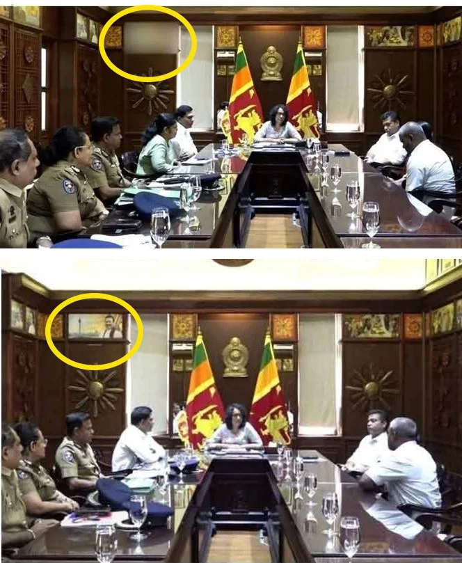 හරිනි අමරසූරිය ආචාර්යවරිය ගේ ප්රධානත්වයෙන් පැවති සාකච්ඡාවක දී ඇය අසුන්ගතව හුන් ස්ථානයේ පසු පස බිත්තියේ දිස් වූ මහින්ද රාජපක්ෂ හිටපු ජනාධිපතිවරයාගේ පින්තූරය බොඳ කිරීමට එහි කිසියම්ට පිරිසක් පියවර ගෙන ඇත.