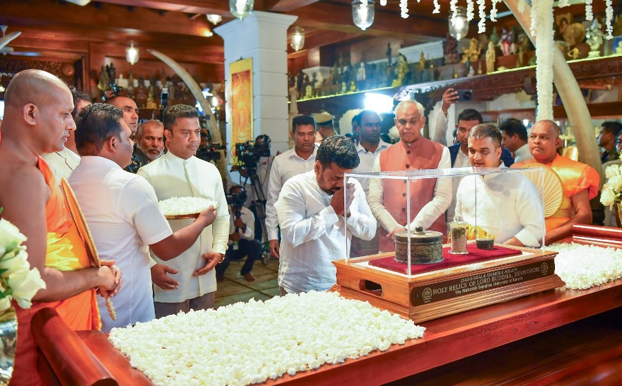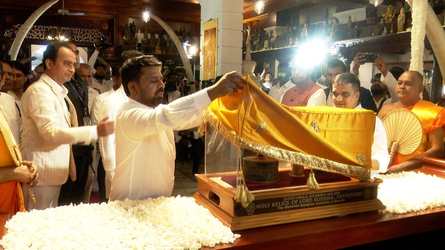 ඓතිහාසික දෙව්නි මෝරි ශ්රී සර්වඥ ධාතුන් වහන්සේ මෙරට වන්දනාවට අදාළ අවබෝධතා ගිවිසුම හුවමාරු කර ගැනීම ද බුද්ධශාසන, ආගමික හා සංස්කෘතික කටයුතු අමාත්ය ආචාර්ය හිනිදුම සුනිල් සෙනෙවි සහ ශ්රී ලංකාවේ වැඩබලන ඉන්දීය මහකොමසාරිස් සත්යාංජල් පාණ්ඩේ යන මහත්වරු අතර මෙහිදී සිදු විය.