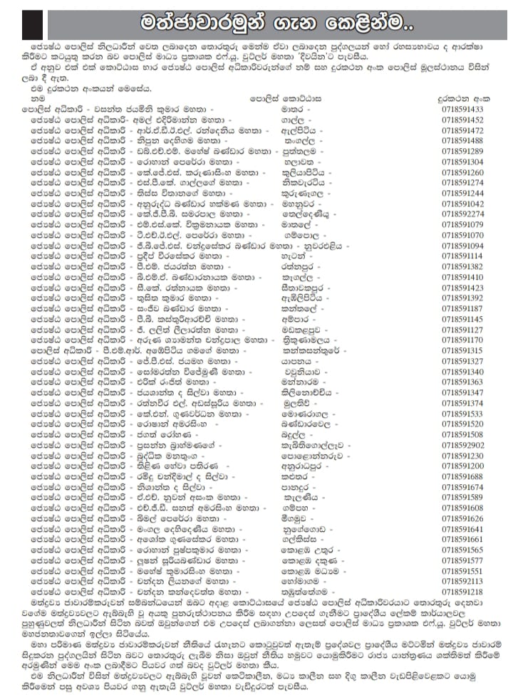 ආරක්ෂකඋණුසුම් පුවත්කාලීන කුඩු ජාවාරම්කාරයින් ගේ තොරතුරු මේ අංක ඔස්සේ දෙන්න 2026-01-210 රහස්යභාවය පොලිසිය සහතික කරයි Share on Facebook Share Share on TwitterTweet Share on LinkedIn Share Post navigation Previous Article ලෝක ආර්ථික සමුළුවේ ඉහළ පෙළේ නියෝජිතයින් සමඟ අගමැතිනි හරිනි ද්විපාර්ශ්වික සාකච්ඡාවල නිරත වූ වගයි Next Article මාර්ටින් වික්රමසිංහ සූරින්ට අපහාස කළ පාහර ටියුෂන් ගුරාට නීතිමය පියවර