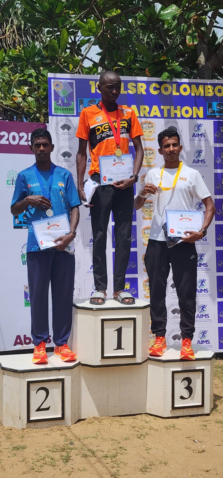 උණුසුම් පුවත්කාලීනක්රීඩා කෙන්යානුවන් 2 ක් හා යුදහමුදා ක්රීඩක ක්රීඩිකාවෝ 4 ක් මැරතන් (මාර්ග) ධාවනයේ සූරකම් පෙන්වති 2025-10-050 19 වැනි කොළඹ මැරතන් ධාවනයේ අභිෂේක ලද්දේ කෙන්යා කොල්ලෙක් හා කෙල්ලක් 19 වැනි එල්. එස්. ආර්. මැරතන් ධාවන තරගයෙන් කෙන්යානු ජාතික ක්රීඩක එළයිස් න්යගා මුතෝරි (Elias Nyaga Muthori) ජයග්රහණය අත්පත් කර ගත්තේ ය. මේ දුර ධාවනය නිමා කරන්නට එළයිස් පැය 02. 25. 35 ක කාලයක් මිඩංගු කරන ලද්දේ ය. දෙවැනි ස්ථාන දිනා ගන්නා ලද්දේ ශ්රී ලංකා යුද හමුදාවේ කේ. ෂන්මුගේෂ්වරන් (K. Shanmugeshwaran) ක්රීඩකයා යි. ෂන්මුගේෂ්වරන් මේ සඳහා ගත කළ කාලය පැය 02. 26. 30 කි. තෙවන ස්ථානය ලද්දේ ද පැය 02. 27. 02 ක කාලය ගෙවන ලද, ශ්රී ලංකා යුද හමුදාවේ දුර ධාවන සූරයකු වන ඊ. ඒ. උදාර චානක රූපසිංහ ක්රීඩකයා යි. කාන්තා මැරතන් ධාවනයෙන් ද කෙන්යානු ක්රීඩිකා කැරොලයින් චෙරොනෝ (Caroline Cherno) සෙසු ක්රීඩිකාවන් අභිබවා කොළඹ - මීගමුව මාර්ග ධාවනයේ ශූරිය සේ කිරුළු පැළදියා ය. කැරොලයින් කොළඹ බණ්ඩාරනායක අනුස්මරණ ජාත්යන්තර සම්මන්ත්රණ ශාලාව අසල සිට බොරුල්ල හරහා මීගමුව දක්වා වූ ධාවනයට ගත කළ කාලය පැය 02. 58. 09 කි. කාන්තා මැරතන් ධාවනයේ දෙවැනි හා තෙවැනි ස්ථාන දෙක ම හිමිකර ගත්තේ ශ්රී ලංකා යුද හමුදාවේ එච්. එම්. ඩබ්ලිව්. ජී. ඩබ්ලිව්. එම්. හේරත් (H. M. W. G. W. M. Herath) ක්රීඩිකාව යි. ඇය පැය 03. 03. 20 කින් මැරතන් තරගය නිමා කළා ය. තෙවන්නිය සේ තරගය නිමා කරන ලද්දේ ඕ. එම්. චමිලා (O. M. Chamila ) ය. ඇය තරගය නිමා කරන ලද්දේ පැය 03. 26. 12 කාලයක් ගෙවමිනි. Share on Facebook Share Share on TwitterTweet Share on LinkedIn Share Post navigation Previous Article සෞඛ්ය ඇමති ඇල්පිටිය රෝහලට ගිහින් Next Article ඩික්සන් ජේ. දිවිගමන හමාර කරයි