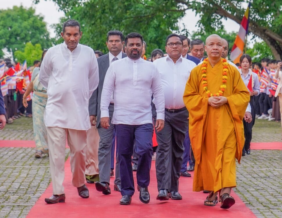 විහාරස්ථාන භූමියේ සංචාරයක නිරත වූ ජනාධිපති අනුර කුමාර දිසානායක මහතා දැක බලා ගැනීමට මඟ දෙපස විශාල පිරිසක් රැස්ව සිටි අතර ඔවුහුද දෙරටේ ජාතික ධජ ලෙලවමින් සිය ආචාරය පිළිගැන්වූහ.