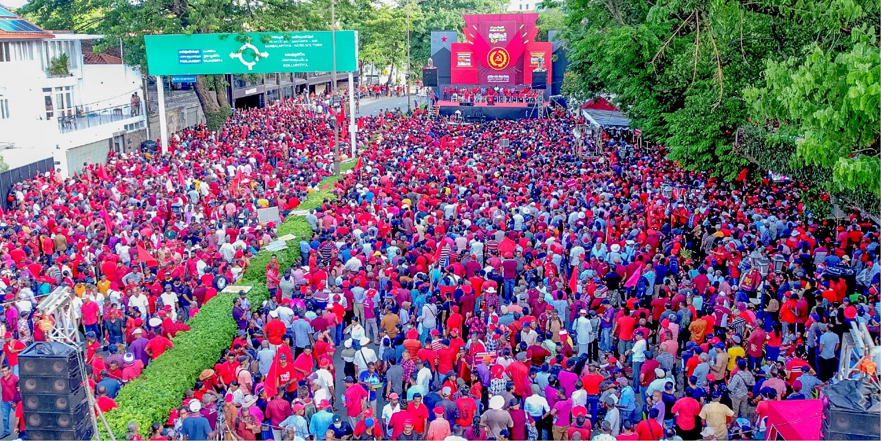 මැයි දිනය පවත්වන්නේ අපි විතරක් නොවෙයි. චැතම් වීදියේ පවත්වන සමගි ජන බලවේගය වේදිකාවේ මහින්ද රාජපක්ෂගේ හිටපු ඇමති ජී.එල්. පීරිස්, ගෝඨාගේ ඇමති නාලක ගොඩහේවා, රනිල්ගේ හිටපු ඇමති සජිත් ප්රේමදාස, ගයන්ත කරුණාතිලක, කිරිඇල්ල, රාජිත ආදී කට්ටුවක් ඉන්නවා. මෛත්රීපාල සිරිසේනගේ හිටපු ඇමති ඩිලාන් පෙරේරාත් ඉන්නවා. කැම්බල් පිටියට ගියොත් මහින්ද රාජපක්ෂ, එයාගේ ආණ්ඩුවේ ඇමති බැසිල් රාජපක්ෂ, ගෝඨාගේ ආණ්ඩුවේ ඇමති නාමල් රාජපක්ෂ, සහ රනිල් වික්රමසිංහගේ ආණ්ඩුවේ ඇමති ප්රසන්න රණතුංග එතන ඉන්නවා. කංකං බූරු අල්ලලා දෙපැත්තට බෙදුණාද දන්නේ නැහැ. මාලිගාවත්තට ගියොත් එතන මෛත්රීපාල සිරිසේනගේ ඇමති හරීන් ප්රනාන්දු, මනුෂ නානායක්කාර, රනිල්ගේ ආණ්ඩුවේ හිටපු රවි කරුණානායක, ඇතුළු ඇමතිලා ඉන්නවා. එකම කට්ටිය ගල මල අල්ලලා වේදිකාවලට බෙදී ගිහින්. කිරුලපන පැත්තේ අනාථනාතලාත් ඉන්නවා. ඔවුන් සියලු දෙනා ස්ථාන හතරක ඉන්නකොට ජාතික ජන බලවේගයේ අපි පමණක් ස්ථාන හතරක මේ රට වෙනස් කිරීම සඳහා ඒකමතිකව, එකමුතුව, එක්සත්ව බලවේගයක් ලෙස පෙළගැසී සිටිනවා. ලංකාවේ පළමු වතාවට පොදු ජනතාව අතට බලය මාරුවීම සඳහා කටයුතු යෙදෙමින් තිබෙනවා. ඒ නිසා දූෂිත පාලක ප්රභූ පංතිය කලබල වී, අන්දමන්ද වී සිටිනවා.