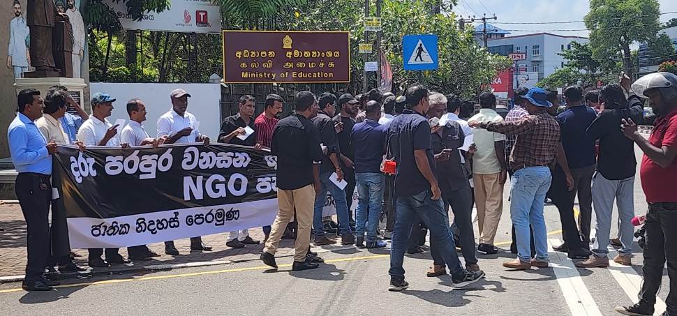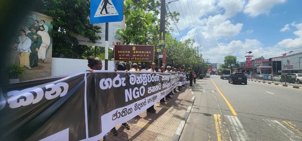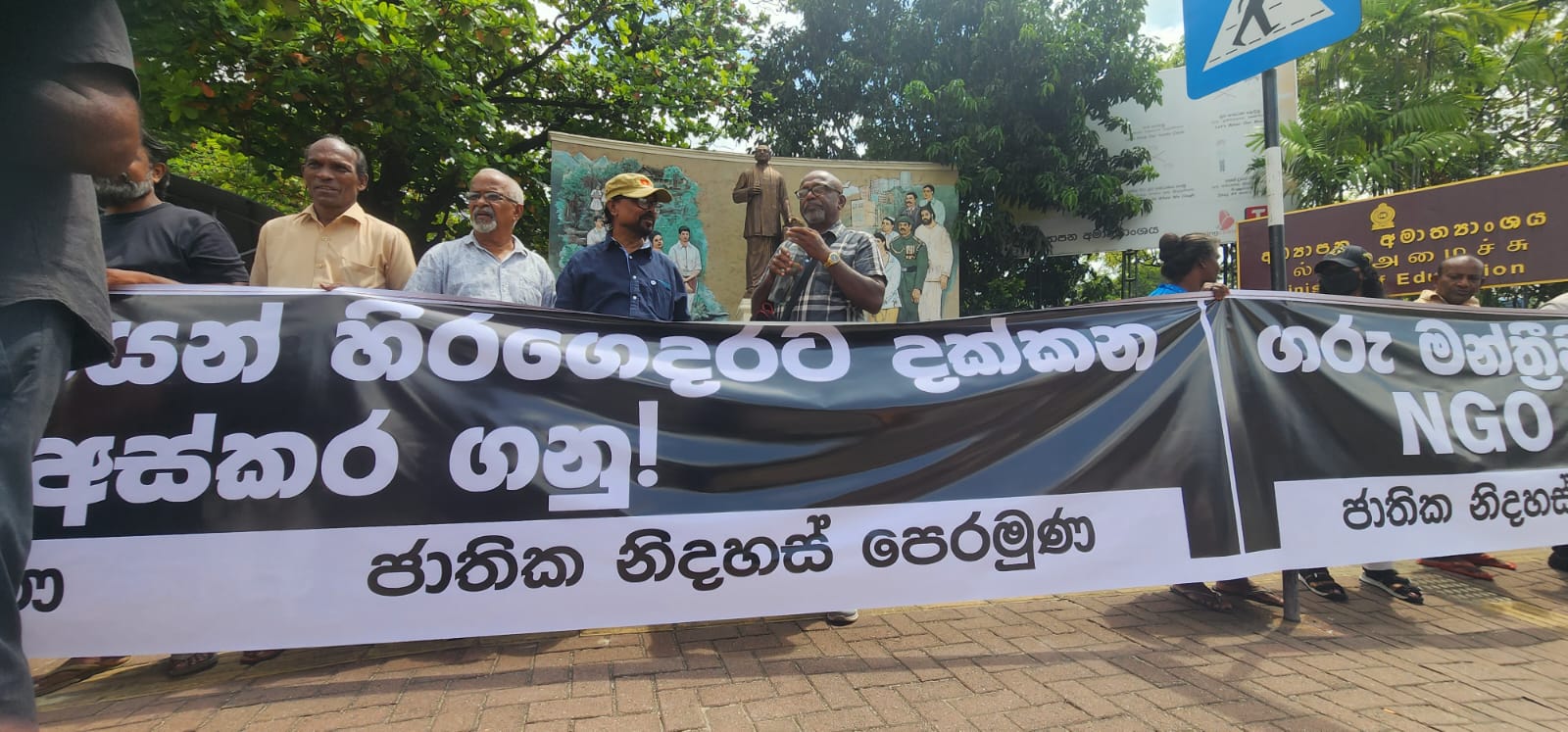 ''අපේ දරු පරපුර වනසන දණ්ඩ නීති සංග්රහයට මේ තුච්ච නීතිය මේ නරුම නීතිය මේ අවලම් නීතිය වහාම ඉල්ලා අස්කර ගන්නා සේ ජාතික ජන බලවේගය ආණ්ඩුවට බලකරන්නට යි ජාතික නිදහස් පෙරමුණේ අපි මේ ඉසුරුපායේ අධ්යාපන අමාත්යාංශයේ මූලස්ථානය ඉදිරිපිටට ආවේ. අගමැතිනි හරිනි අමරසූරිය, සාවිත්රි පෝල්රාජ්, ඒ වගේ ම හර්ෂණ නානායක්කර ප්රමුඛ ජාතික ජන බලවේගයේ ආණ්ඩුව අපේ රටේ සංස්කෘතිය බිඳ දමන, සමාජය බිඳ දමන, පවුල බිඳදමන අවසාන ඇණය ගහන්න තමයි මේ ලකලෑස්ති වෙන්නේ.