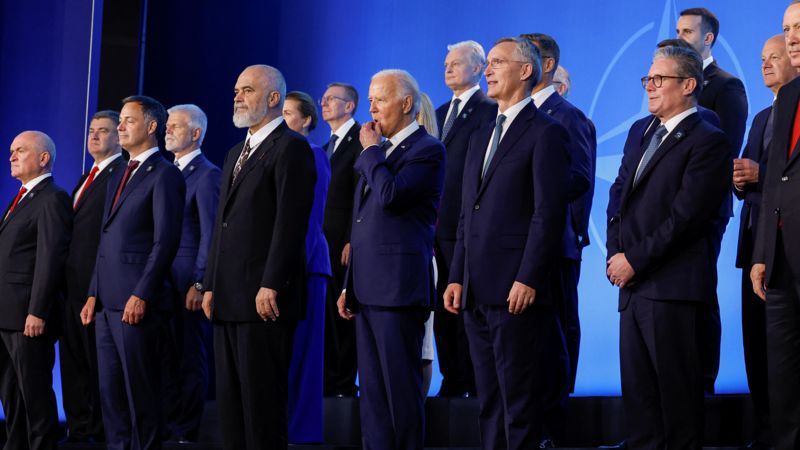 එක්සත් ජනපද ජනාධිපති ජෝ බයිඩන් නේටෝ නායකයින්ට වොෂින්ටනයේ සත්කාරකත්වය සපයයි, නමුත් ඔහුගේ නැවත තේරී පත්වීමේ ලංසුව සම්බන්ධයෙන් තවත් ප්රශ්න සමඟ දේශීය වශයෙන් තැලීම් උදෑසනකට මුහුණ දී තිබේ.