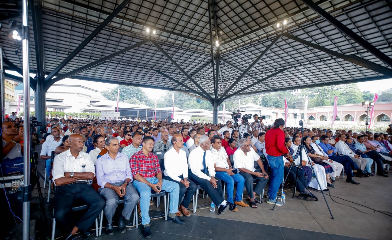 සමහර අය අපෙන් අහනවා, කැබිනට් මණ්ඩලයට පත් කරන්නේ කවුරුන්ද කියලා. පැරැණි යුගය තිබුණේ, පත් කරන ඇමැතිට සියල්ල ගැටගසමින් ගෙන යන්නයි. නමුත්, අපට අවශ්ය වන්නේ ඇමැතිවරයෙක් ව්යවස්ථාවට අනුව පත් කළත්, සාමුහිකව පර්යේෂණ සිදු කරන කෘෂිකර්මයට අදාළ සියලු ක්ෂේත්ර පිළිබඳව මණ්ඩලයකින් සමන්විත සාමුහික තීරණ ගැනීමේ ඒකක පිහිටුවීමටයි. ආරක්ෂාවත් ඒ වගෙයි. අප ජාතික ආරක්ෂාව පිළිබඳ එක්ස්පර්ට්ලා නොවෙයි. හැබැයි, ඒ සම්බන්ධයෙන් විශේෂඥයන් මේ වේදිකාවේ ඉන්නවා. ඔවුන් තමයි, ඒ පිළිබඳව තීරණ ගන්නේ. අනෙක් අතින් ජාතික ආරක්ෂාව කියන්නේ බයිනෙත්තුවක් අතින් ගත් සොල්දාදුවෙක් හන්දියක සිටුවා තැබීම නොවෙයි. ඒ වටා තිබෙන සමස්තය පුරවැසියගේ ජීවිතවලින් පිළිබිඹු කිරීමයි. ඒ නිසා පැරැණි ක්රමය මතකයේ තබාගෙන අපෙන් ප්රශ්න අහනවා වෙනුවට නව පරිවර්තනයක් පිළිබඳව චිත්රයක් සිතේ මවාගෙන ප්රශ්න අහන ලෙස මාධ්යවේදීන්ගෙන් ඉල්ලා සිටිනවා. අප යෝජනා කරන්නේ නූතන ශ්රී ලංකාවක් ගොඩනැඟීමේ මධ්යස්ථානයක්. අප යෝජනා කරන්නේ හුදු ආර්ථික ගමනක් පමණක් නොවෙයි. මිනිස් චින්තනයේ නව පරිවර්තනයක් ද පිළිබඳවයි.