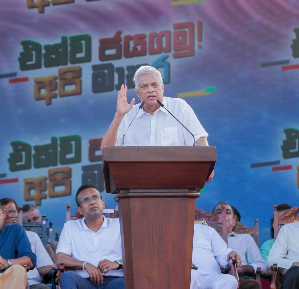 අද මම මේ ප්රදේශයට පැමිණෙන විට මෙම මාතර ජනතාව විඳි දුක සිහිපත් වුණා. 2022 සිංහල අලුත් අවුරුද්ද මම ගත කළේ මෙම කඹුරුපිටියේ ප්රදේශයේ. මම නැවති සිටි හෝටලය ඉදිරිපිට ඉන්ධන පිරිවුම්හලක් තිබුණා. එතන දිගු වාහන පෝළිමක් තිබුණා. ජනතාව ආණ්ඩුවට දෝෂාරෝපණය කරමින් එම පෝළිම්වල දුක් විඳිනවා මම දුටුවා. එදා මම තීරණය කළා මේ තත්ත්වය නැවත රටේ ඇතිවෙන්න ඉඩ දෙන්න බැහැ කියලා. මම ඊට පෙර ජාත්යන්තර මූල්ය අරමුදලේ ප්රධානීන් සමඟ සාකච්ඡා කර තිබුණා. ලෝක බැංකුව සමඟ සාකච්ඡා කර එම පණිවිඩ පිළිබඳ කිහිප වතාවක් හිටපු ජනාධිපති ගෝඨාභය රාජපක්ෂ මහතාව දැනුවත් කළා. කෙසේ හෝ අවසානයේ මට මේ රට භාර ගැනිමට සිදු වුණා.