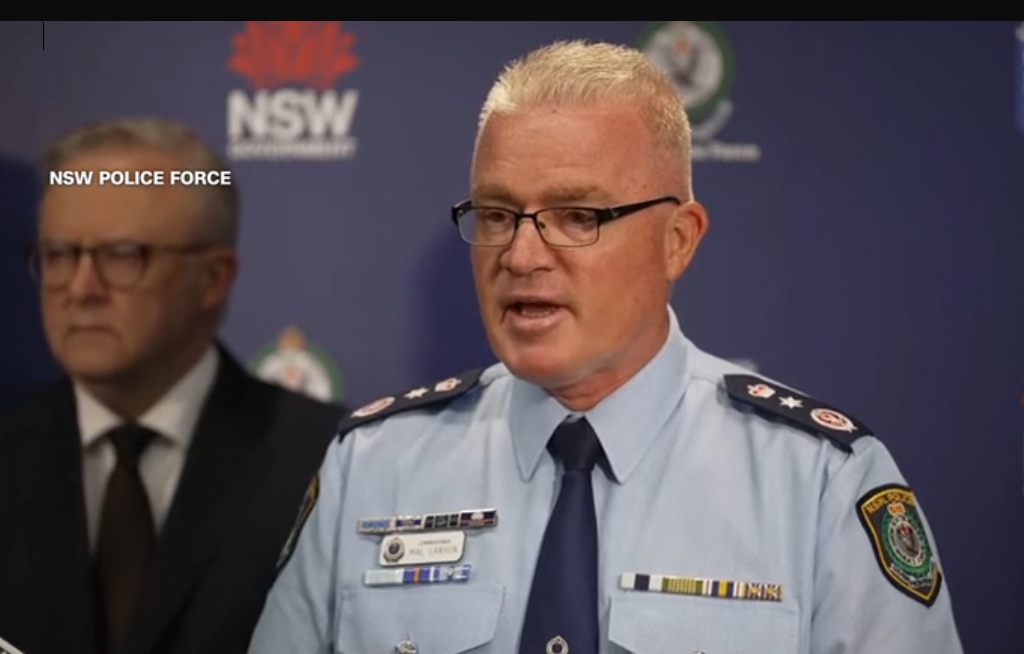 ඕස්ට්රේලියාවේ බොන්ඩි බීච් හි සිදු කෙරුණු මාරාන්තික ත්රස්තවාදී ප්රහාරයට පිය පුතු දෙදෙනකු සැක කරන බව නිව් සවුත් වේල්ස් පොලිස් කොමසාරිස් මැල් ලැන්යොන් (Police Commissioner Mal Lanyon) සඳුදා වාර්තාකරුවන්ට පැවසී ය.