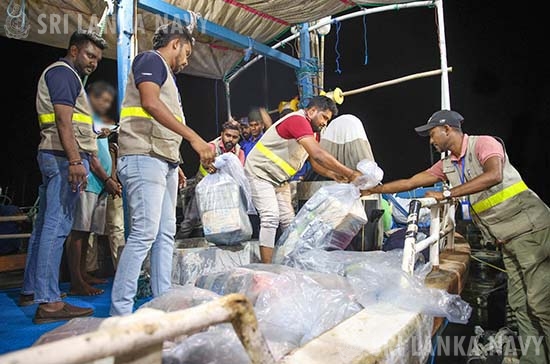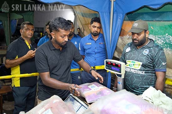 නාවික හමුදාව, ශ්රී ලංකාවට දකුණු දිග ගැඹුරු මුහුදේ සිදුකළ විශේෂ නාවික මෙහෙයුමකදී, විෂ මත්ද්රව්ය අඩංගු බවට සැකකෙරෙන උර තොගයක් ප්රවාහනය කරමින් තිබූ දේශීය බහුදින ධීවර යාත්රාවක් සමඟ සැකකරුවන් හය දෙනෙකු (06) නාවික හමුදා භාරයට ගැනීමට කටයුතු කෙරිණි. එම බහුදින ධීවර යාත්රාව සහ සැකකරුවන් 2025 නොවැම්බර් මස 20 වැනි දින තංගල්ල ධීවර වරායට රැගෙනවිත් පොලිස් මත්ද්රව්ය නාශක කාර්යංශය සිදුකළ විශේෂඥ පරීක්ෂාවේදී, මත්ද්රව්ය බවට සැක කෙරෙණ උර 18ක් තුල අයිස් මත්ද්රව්ය කිලෝ ග්රෑම් 261කට අධික තොගයක් සහ හෙරොයින් මත්ද්රව්ය කිලෝ ග්රෑම් 115 කට අධික තොගයක් ඇති බවට තහවුරු විය. එමෙන්ම, මත්ද්රව්ය තොගය සමඟ රිවෝල්වර් වර්ගයේ හා පිස්තෝල වර්ගයේ පැති අවි 02 ක්, පතොරම් ගැබ් 02 ක් සහ චන්ද්රිකා දුරකතනයක් ද විමර්ශකයෝ සොයා ගත්හ.