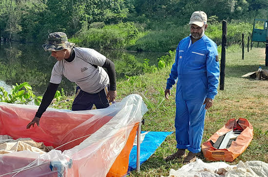 ඒ අනුව, ඉන්ධන විසිරීම සිදුවූ රාවනාගම වැව් පරිශ්රය වෙත ළඟා වූ වෙරළාරක්ෂක නිලධාරීන් තිදෙනෙක් (03) සහ වෙරළාරක්ෂක නාවිකයන් දස දෙනෙක් ගෙන් (10) සමන්විත ශ්රී ලංකා වෙරළාරක්ෂක දෙපාර්තමේන්තුවේ ඉන්ධන විසිරීම් කළමණාකරණය කිරීම සඳහා පුහුණුව ලත් විශේෂ කණ්ඩායම; ලග්ගල ප්රාදේශිය ලේකම් කාර්යාලයේ, ගුරුලුවෙල ග්රාම නිලධාරි කාර්යාලයේ, මහවැලි ව්යාපෘති කණ්ඩායමේ, ලග්ගල පොලිසියේ සහ ප්රදේශවාසීන්ගේ සහයෝගයෙන් වැව් ජලයෙන් ඉන්ධන ඉවත් කිරීමේ මෙහෙයුම 2024 මැයි මස 06 වන දින උදෑසන ආරම්භ කෙරිණි. එහිදී, වෙරළාරක්ෂක දෙපාර්තමේන්තුවේ ඉන්ධන විසිරීම් කළමණාකරණ කණ්ඩායම තාක්ෂණික උපකරණ සහ ශිල්පීය දැනුම උපයෝගි කර ගනිමින් මහත් පරිශ්රමයක් යොදා රාවනාගම වැව් ජලයට මිශ්රව තිබූ ඉන්ධන ලීටර් 2000 ක පමණ තොගයක් සාර්ථකව ඉවත් කිරීමට කටයුතු කෙරිණි.