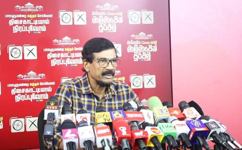 මෙහිදී මාධ්ය හමුවේ දී ජනතා විමුක්ති පෙරමුණේ ලේකම්වරයා ඔවුන් අමතමින්,