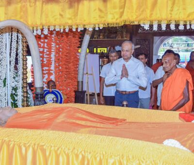 වැඩි විස්තරකිරින්දේ අස්සජි නාහිමිපාණන් හා කෙටි සාකච්ඡාවක ද නිරත වෙයි. අපවත් වී වදාළ පූජ්ය ගලබොඩ ඥානීස්සර නායක හිමිපාණන් වහන්සේගේ ශ්රී දේහයට ජනපති අවසන් ගෞරව