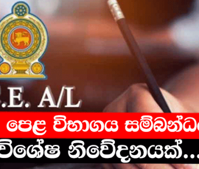 වැඩි විස්තරපවතින අධික වැසි සහිත කාලගුණ තත්ත්වය සැලකිල්ලට ගනිමින් අද (27) සහ හෙට අධ්යයන පොදු සහතික පත්ර උසස් පෙළ විභාගය නොපැවැත්වෙන බව විභාග දෙපාර්තමේන්තුව කිය