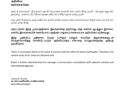 වැඩි විස්තරඉන්දූනිසියාවේ සුමාත්රා හි භූකම්පනයක් ජාතික සුනාමි පූර්ව අනතුරු ඇඟවීමේ මධ්යස්ථානයෙන් නිකුත් කරන ලද නිවේදනයකින් සඳහන් කරන්නේ ඉන්දූනිසියාවේ සුමාත්රා