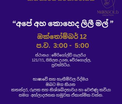 පියාඹන්න කිමැ මේ කතාවකට ඇරයුම්  කළ                     තිගැස්සී  මාල අහිමි මල් වර වූ                         ළමිස්සී පියාඹන්න කිම මේ හැටි