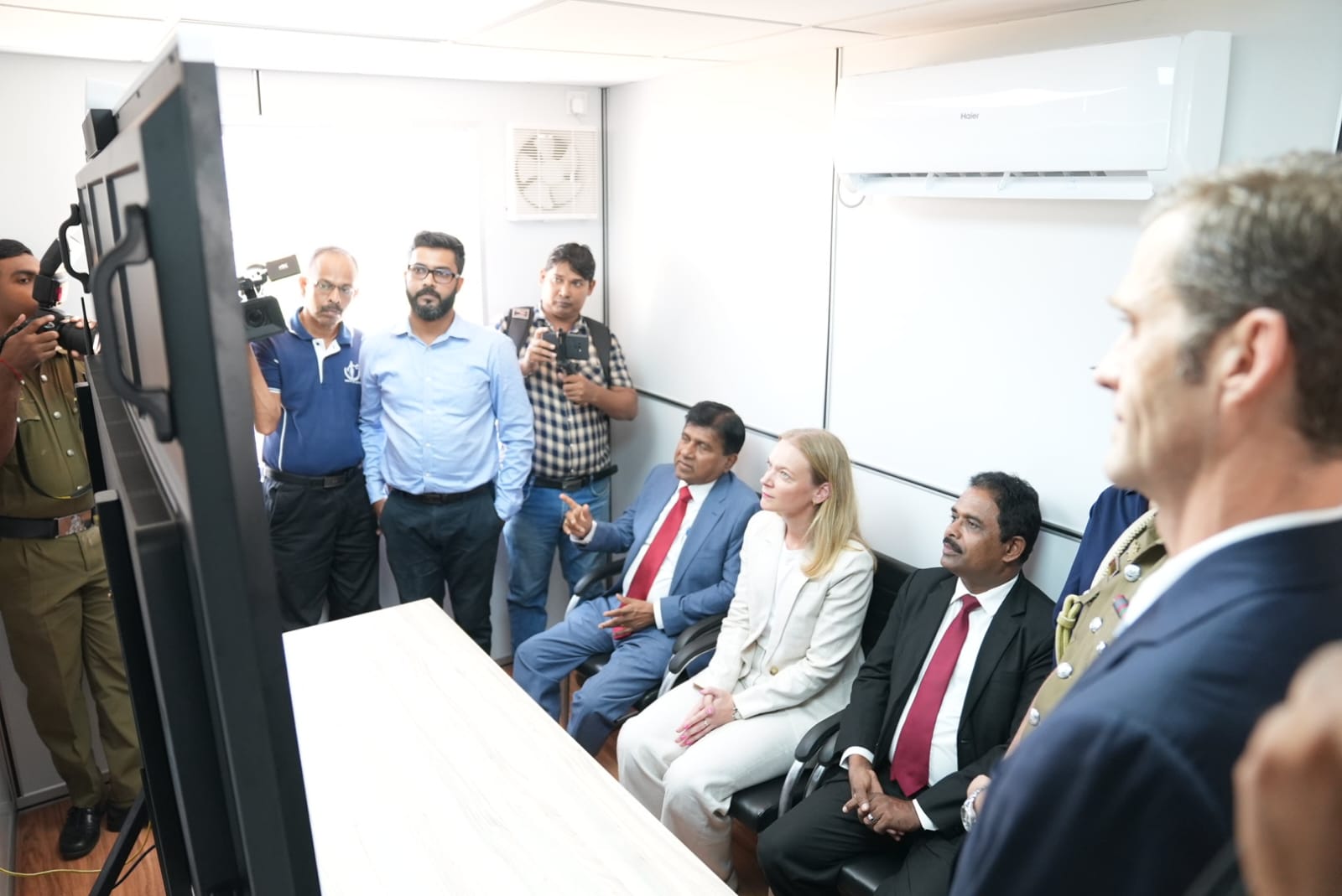 Upon the conclusion of the ceremonial handover of the virtual court in Angunakolapelessa, the Minister accompanied by the delegations from UNODC and the U.S. State Department, made a visit to the virtual court established at the Galle prison facility.